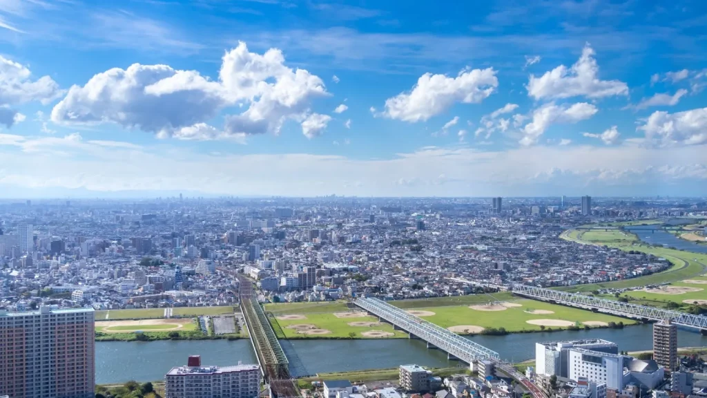 สำหรับชาวต่างชาติที่พำนักในโตเกียว ขอแนะนำให้มาเยือนเขตเอโดกาวะ คุณสามารถสัมผัสธรรมชาติที่อุดมสมบูรณ์ และบรรยากาศย่านเมืองเก่าที่แตกต่างจากใจกลางเมือง เขตเอโดกาวะมีเสน่ห์ที่หลากหลาย เช่น เทคโนโลยีล้ำสมัย, วัฒนธรรมดั้งเดิมของญี่ปุ่น, อาหารรสเลิศ, และกิจกรรมสันทนาการ โปรดสร้างความทรงจำพิเศษในเขตเอโดกาวะ [ภาพ: สะพานที่ทอดยาวไปทั่วแม่น้ำเอโดกาวะ]