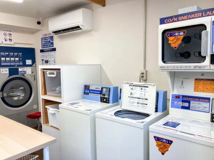 Coin Laundry ญี่ปุ่นสามารถซักผ้าทั่วไป เช่น เสื้อเชิ้ตและถุงเท้า นอกเหนือจากผ้าปูที่นอน (ผ้าห่ม, ผ้านวม, ผ้าปูที่นอน) พรม และผ้าม่านได้ด้วย นอกจากนี้ บางร้านมี **”Sneaker Laundry”** ซึ่งเป็นเครื่องซักผ้าสำหรับรองเท้าโดยเฉพาะ ซึ่งคุณสามารถซักรองเท้าผ้าใบ และรองเท้าที่ทำจากวัสดุสังเคราะห์ได้